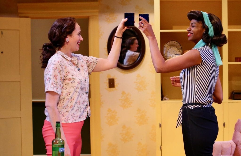 Photos, clockwise from top left: Hazardous Materials at Creede Repertory Theatre (2019), Creede CO; The Bottle Tree at Stage Left Theatre, Chicago, IL (2016); Scrambled at BCTC Theatre, Lexington, KY (2013)‘ leading a talkback at Ashland New Plays Festival, Ashland, OR (2018); Beth Kander on set with director Kyle Haden (CRT, 2019); The Bottle Tree, Stage Left; See Jane Quit at Fondren Theatre Workshop/The Warehouse, Jackson, MS (2014); ANPF talkback with EM Lewis (2016).